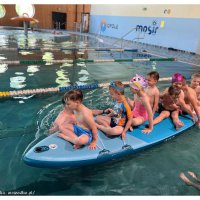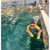 Zajęcia były pełne uśmiechu, zabawy i wodnych szaleństw. Dzieci z wielkim zaangażowaniem uczestniczyły w ćwiczeniach oswajających z wodą, uczyły się podstawowych ruchów pływackich oraz brały udział w kolorowych grach i zabawach w wodzie 🎈🐠