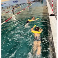 Zajęcia były pełne uśmiechu, zabawy i wodnych szaleństw. Dzieci z wielkim zaangażowaniem uczestniczyły w ćwiczeniach oswajających z wodą, uczyły się podstawowych ruchów pływackich oraz brały udział w kolorowych grach i zabawach w wodzie 🎈🐠